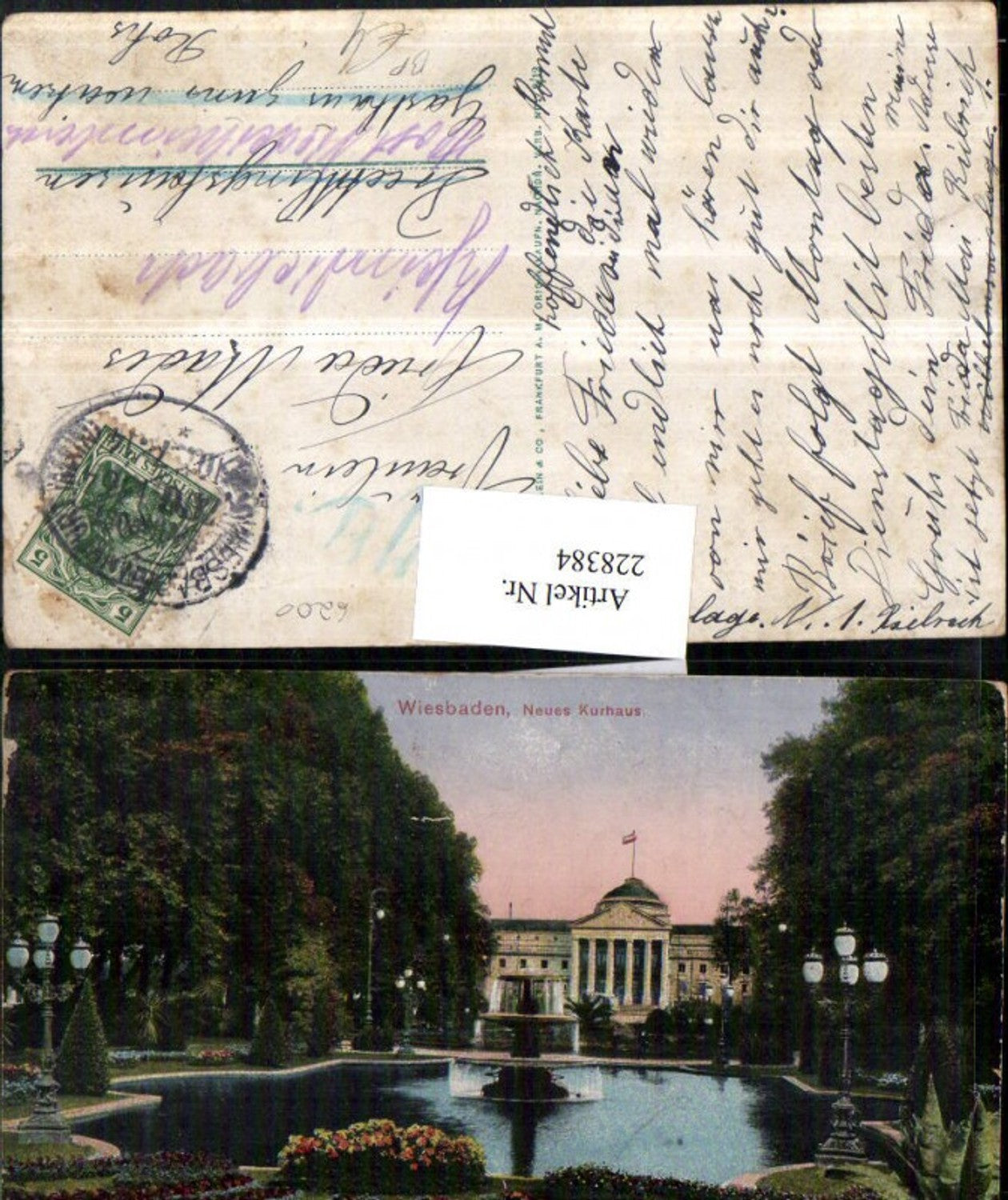 228384,Wiesbaden Neues Kurhaus m. Garten Brunnen Bahnpost Zug 1364