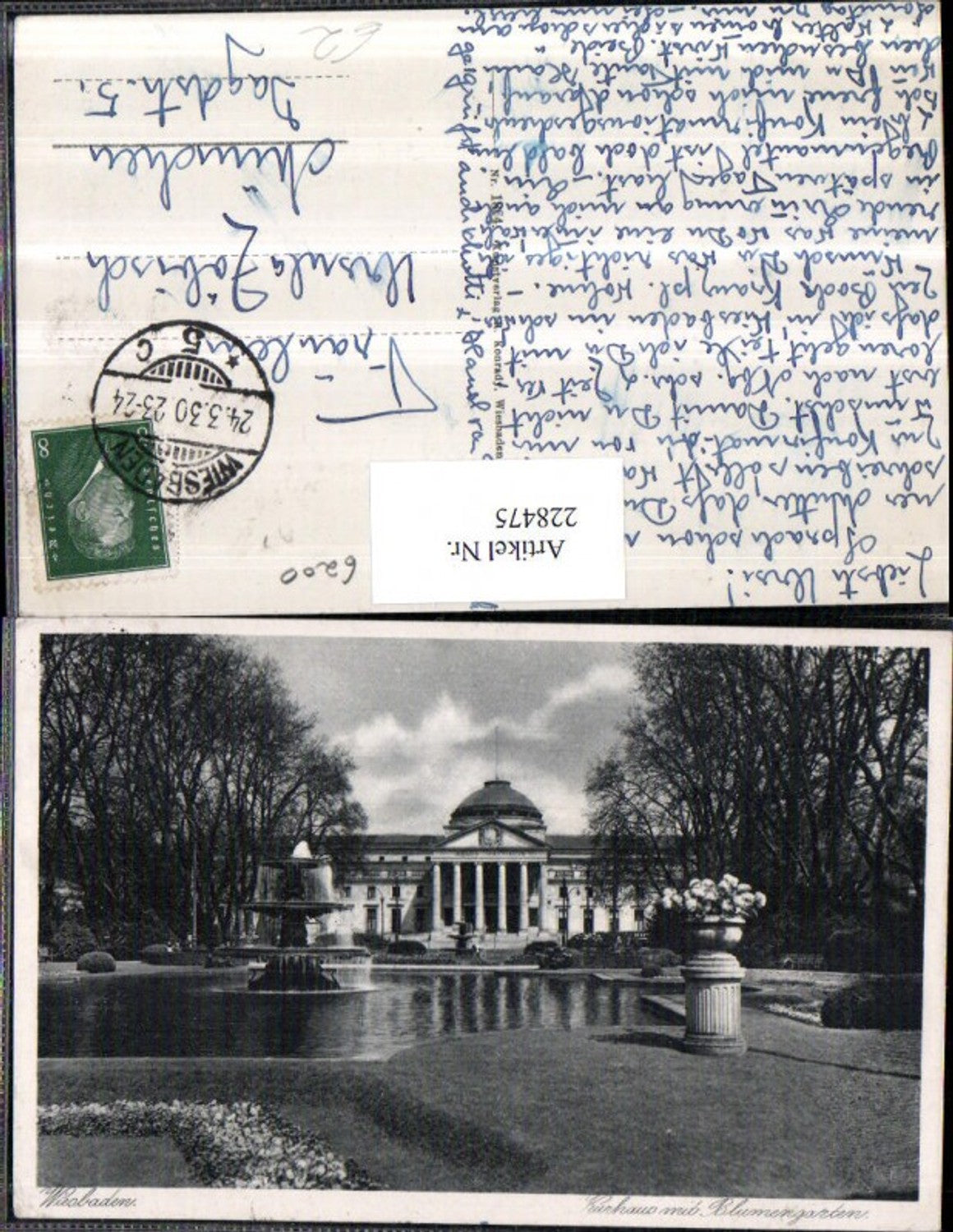 228475,Wiesbaden Kurhaus m. Blumengarten Garten Brunnen