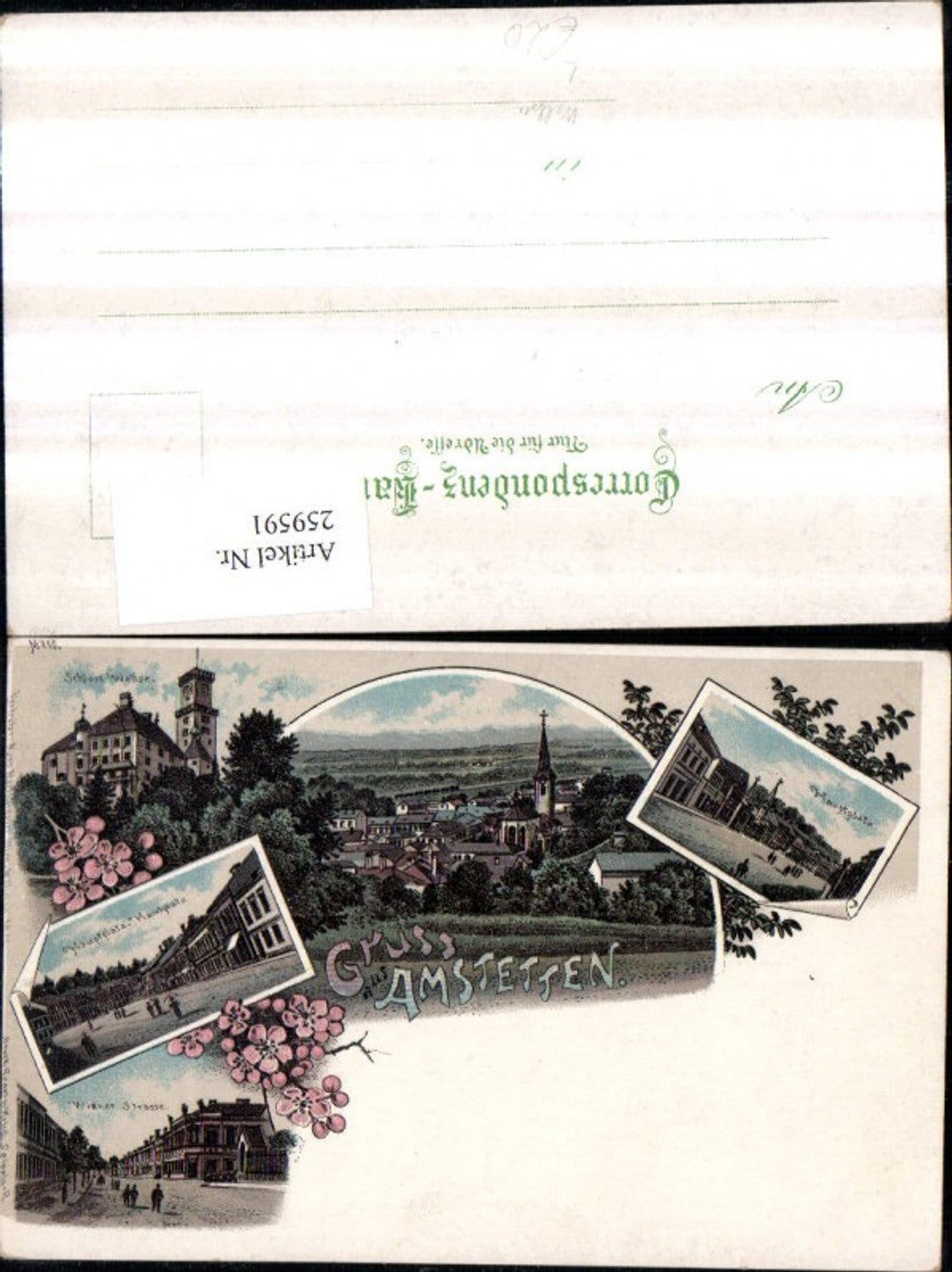 259591,Litho AK Gruß aus Amstetten Teilansicht Kirche Hauptplatz Straßenansicht Schloss Wallsee Mehrbildkarte