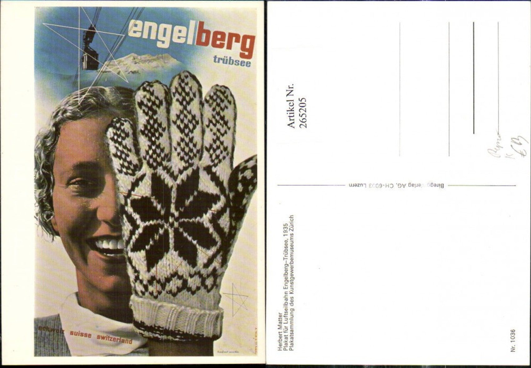 265205,Repro Reklame Herbert Matter Plakat f. Luftseilbahn Engelberg Trübsee 1935 Frau Handschuh