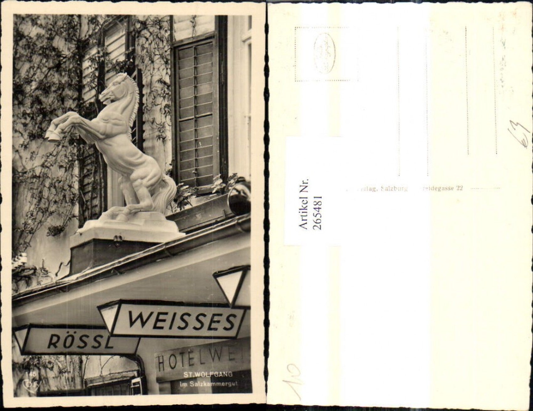 265481,Foto Ak St Wolfgang a. Wolfgangsee Weisses Rössl Detailansicht Pferd a. Eingang Hotel