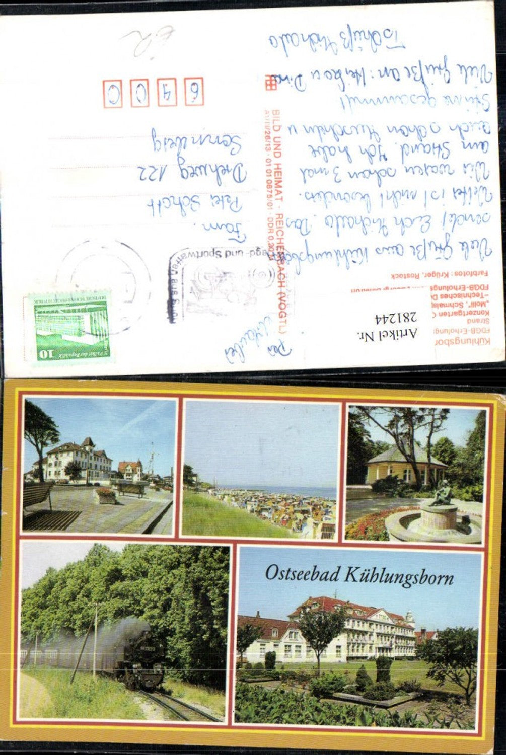 281244,Ostseebad Kühlungsborn Strand FDGB-Erholungsheim Konzertgarten Schmalspurbahn Mehrbildkarte