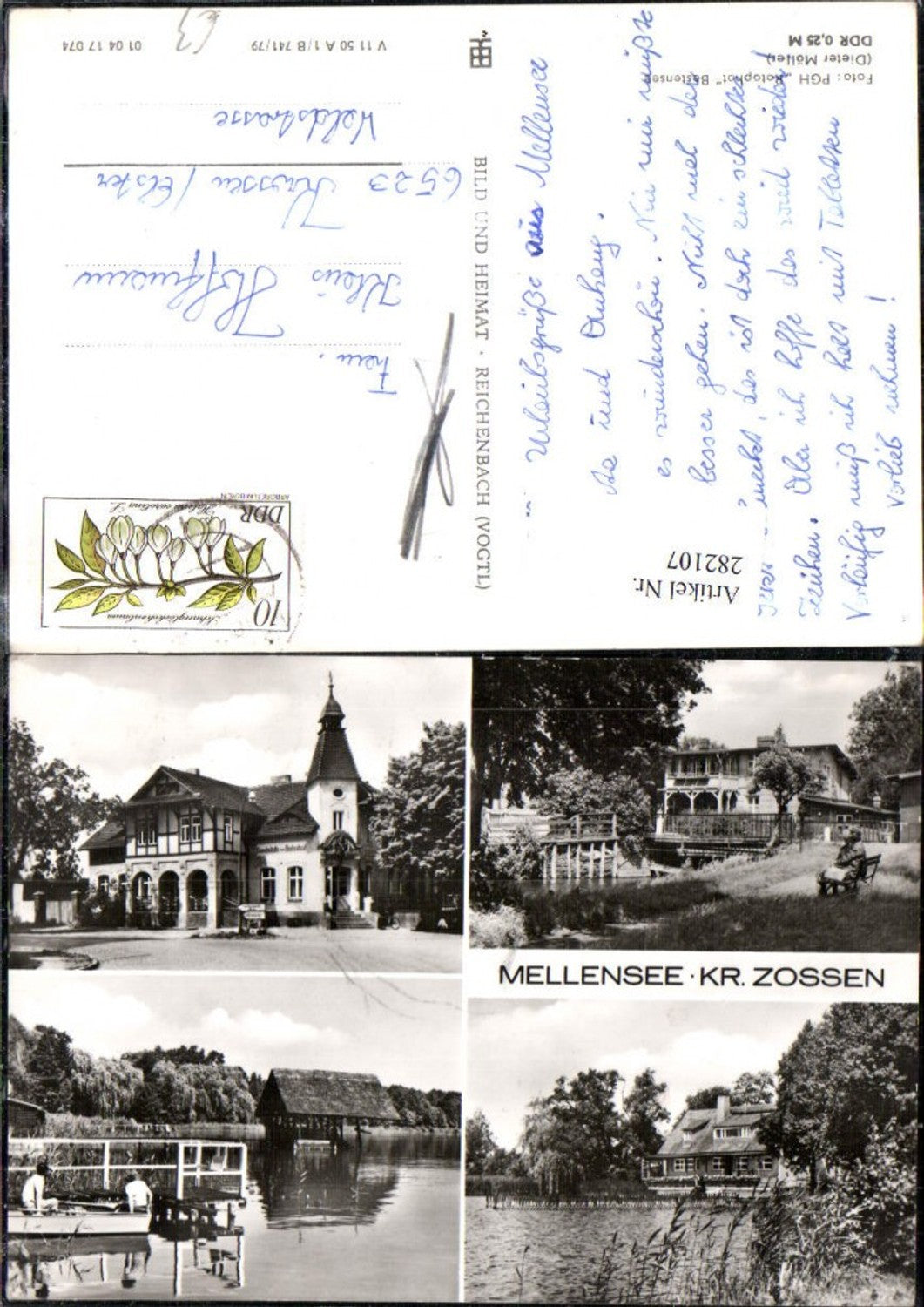 282107,Mellensee Gaststätte zum Bahnhof Hausansicht Steg Boot Mehrbildkarte