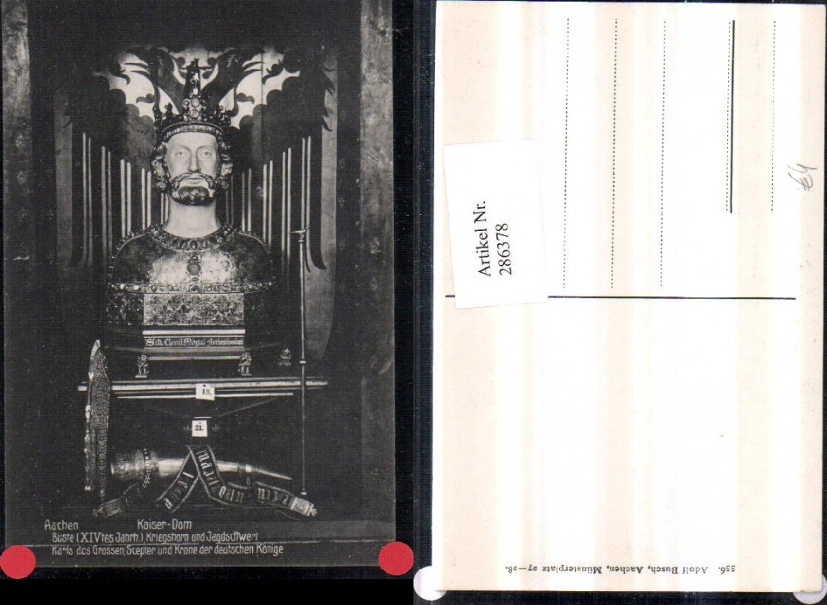 286378,Aachen Kaiser-Dom Büste Karls des Großen Kriegshorn u. Jagdschwert