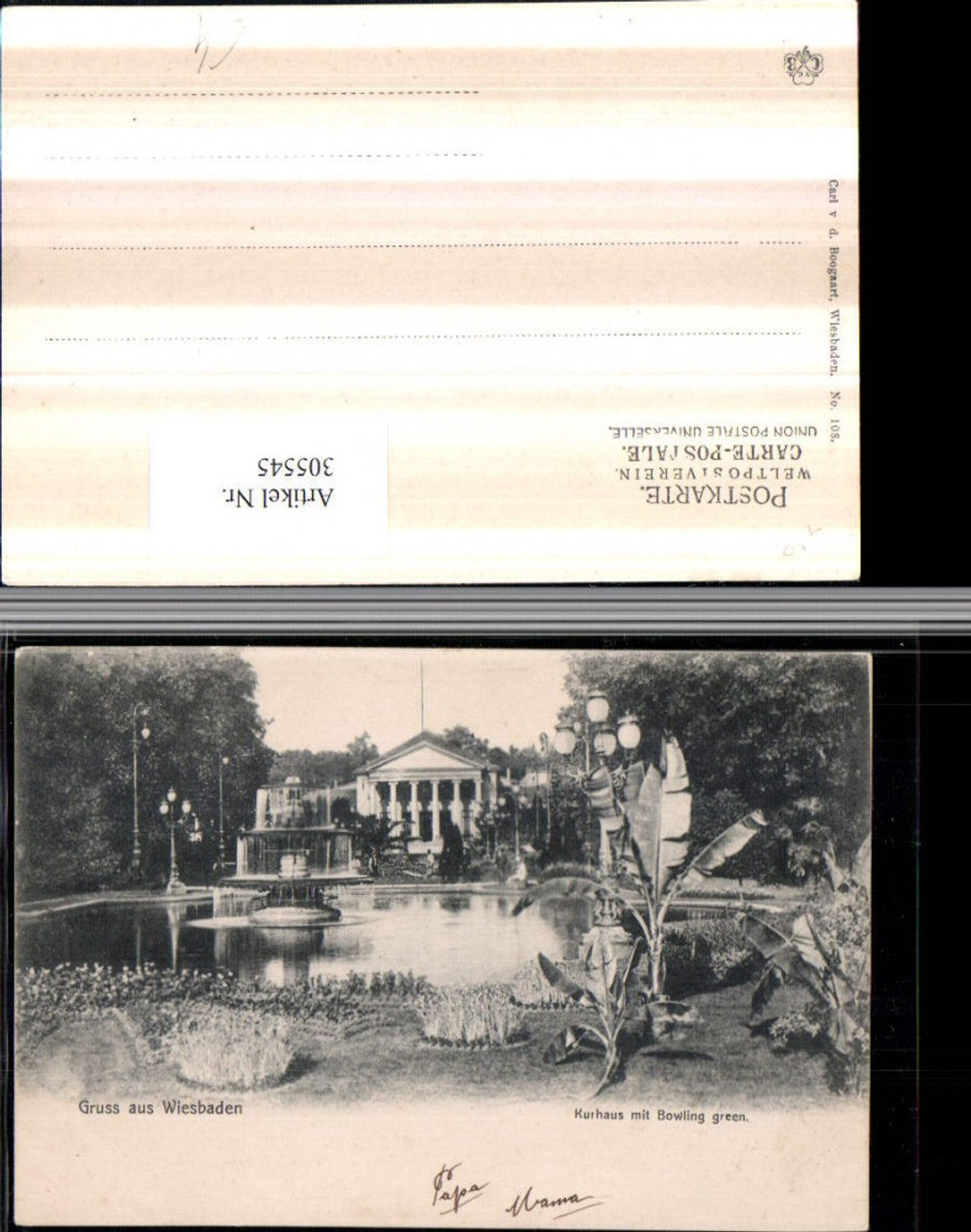 305545,Gruß aus Wiesbaden Kurhaus m. Bowling green Springbrunnen