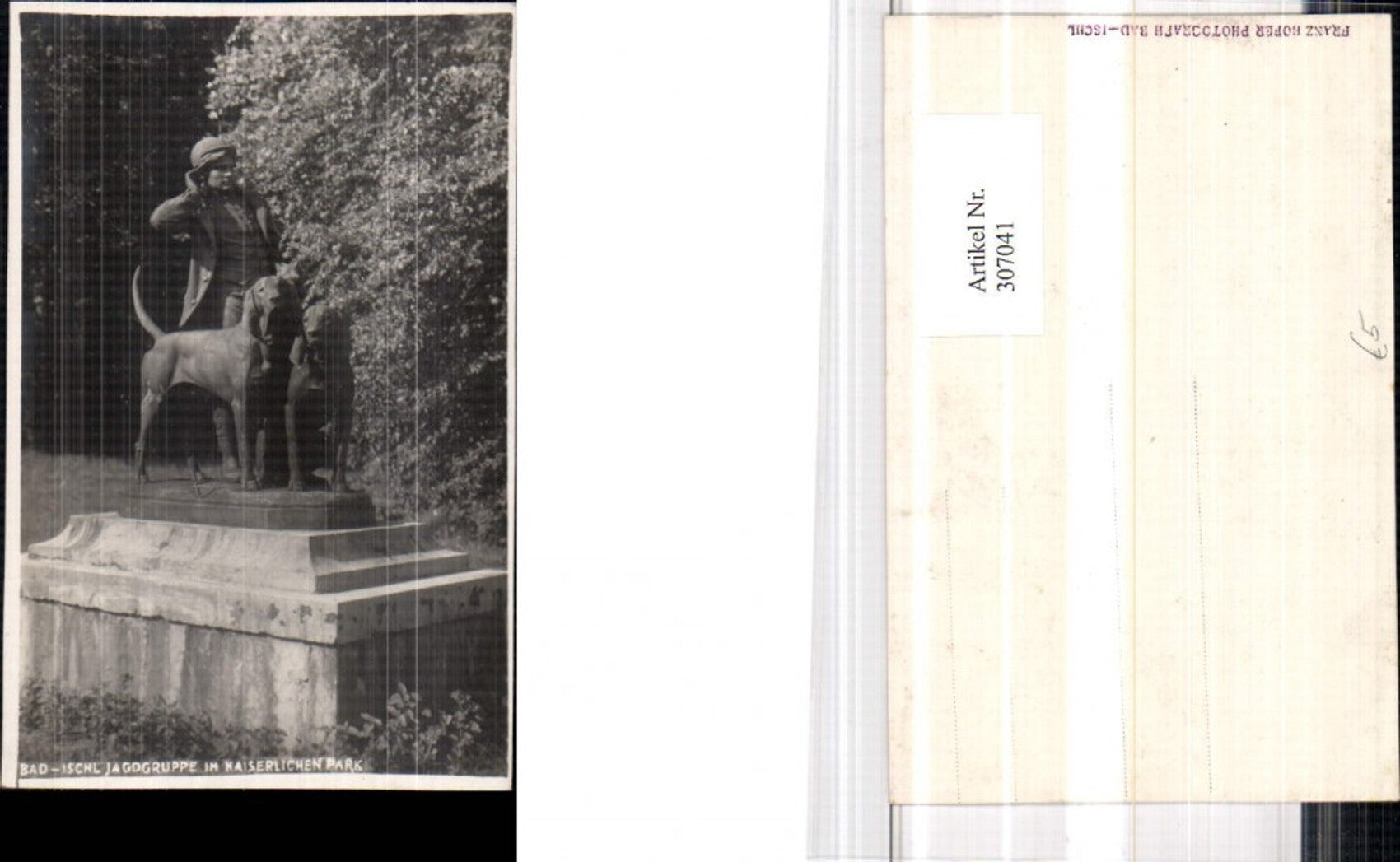 307041,Bad Ischl Jagdgruppe im Kaiserlichen Park Statue Mann m. Hunde