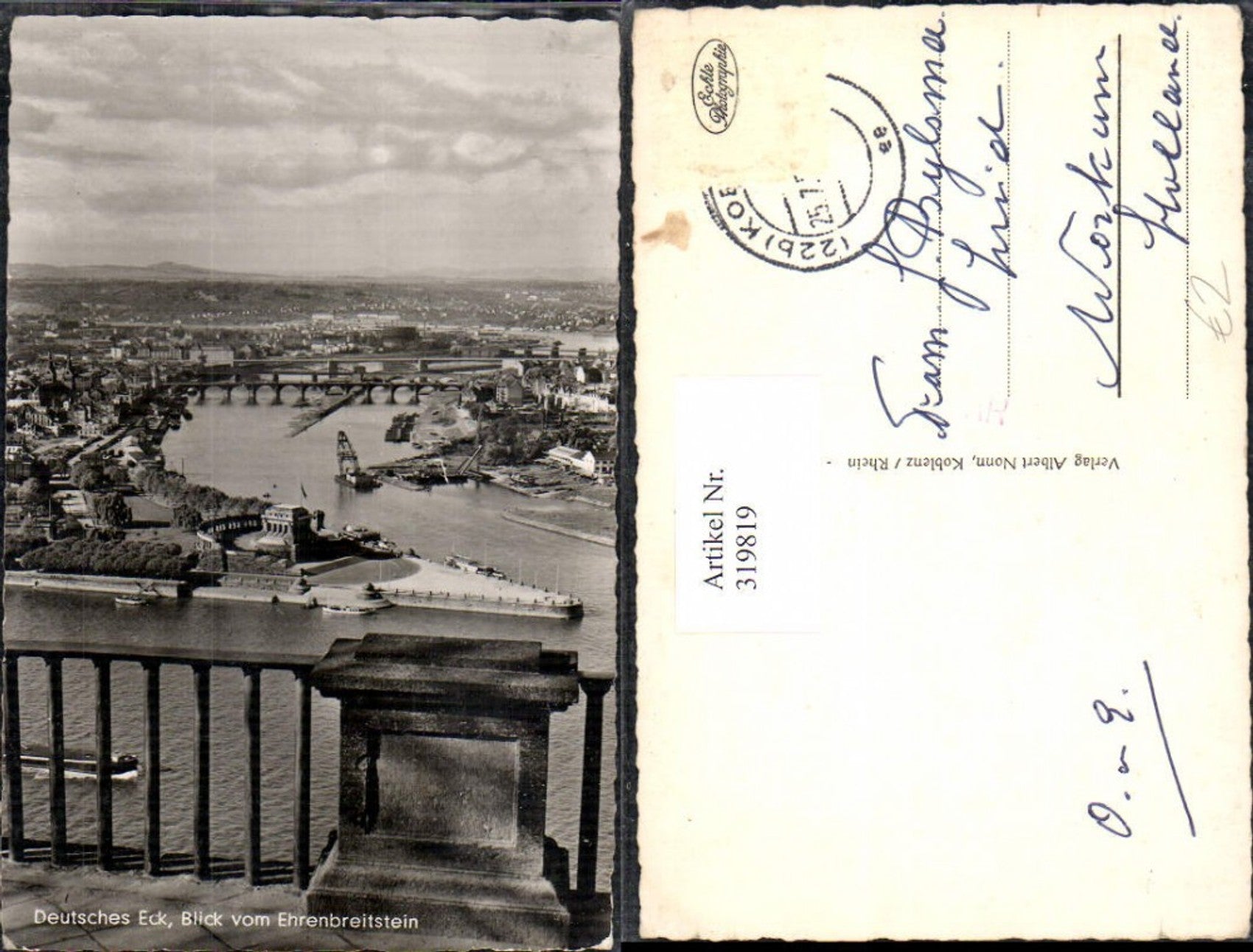 319819,Foto Ak Deutsches Eck Blick v. Ehrenbreitstein Koblenz