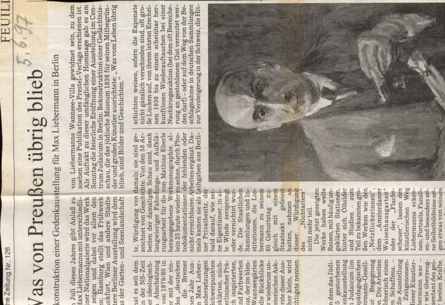 320499,Zeitungsausschnitt Max Liebermann Biographie Gedenkausstellung Berlin