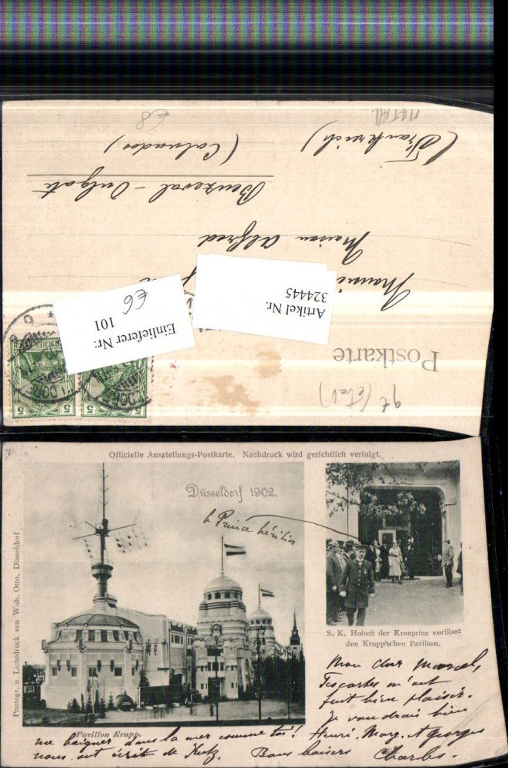 324445,Düsseldorf Pavillon Krupp S.K. Hoheit Kronprinz verlässt Kruppschen Pavillon Mehrbildkarte