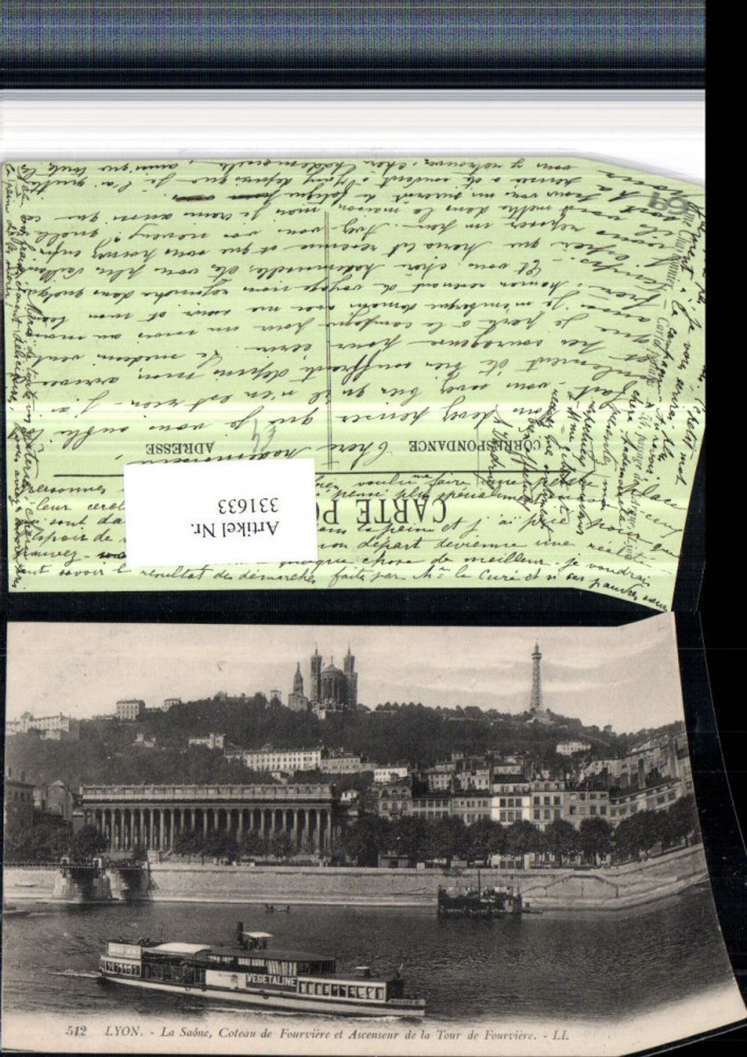 331633,Rhone-Alpes Rhone Lyon Coteau de Fourviere Teilansicht Boot Kirche