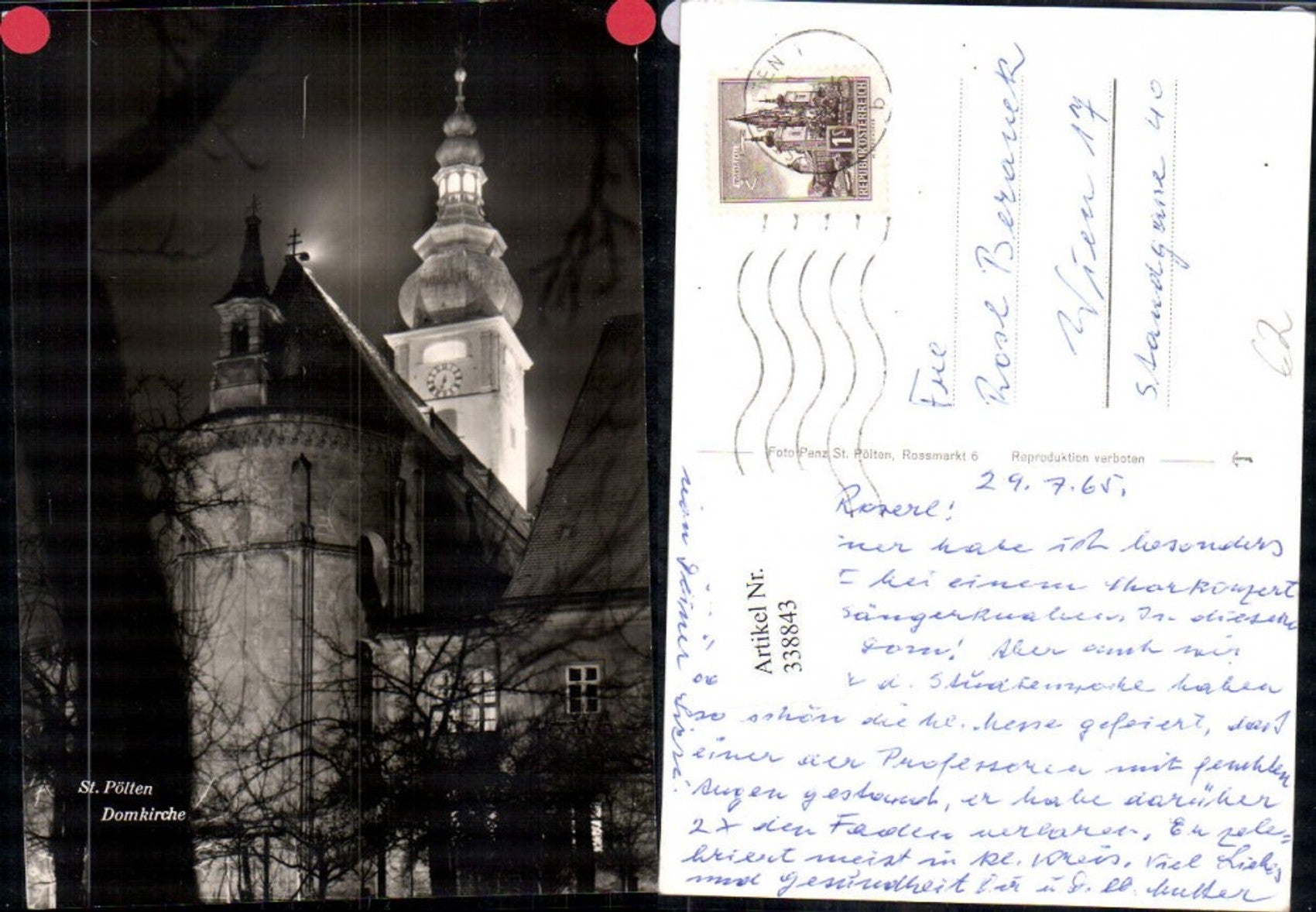 338843,Foto Ak Kirche St Pölten Domkirche Ansicht b. Nacht 1965