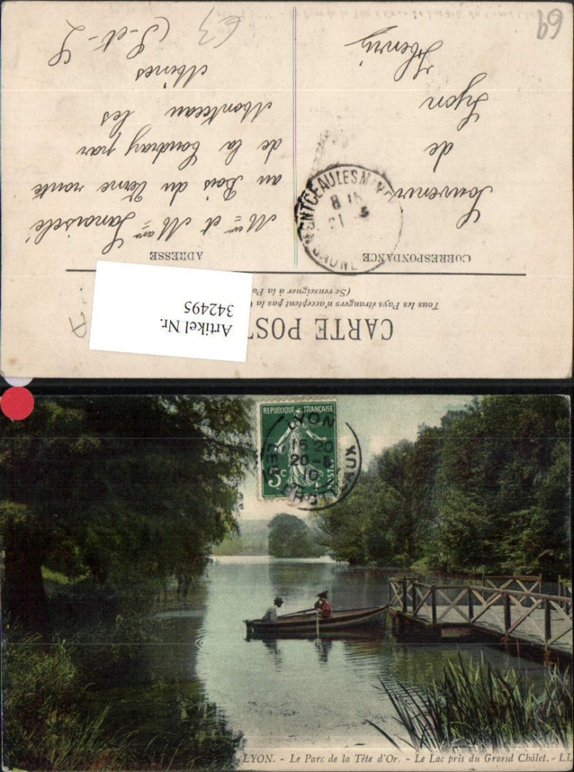 342495,Rhone-Alpes Rhone Lyon Le Parc de la Tete d'Or Le Lac pris du Granc Chalet See Ruderboot