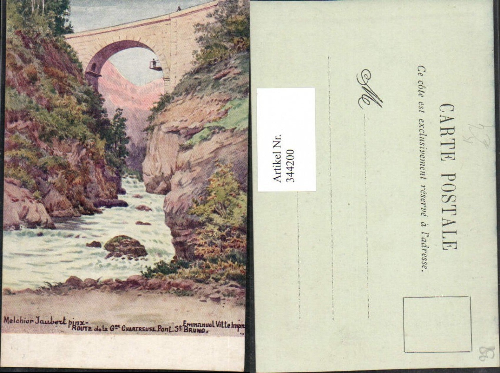 344200,Künstler AK Melchior Jaubert Rhone-Alpes Isere Route Grande Chartreuse Pont St-Bruno Brücke