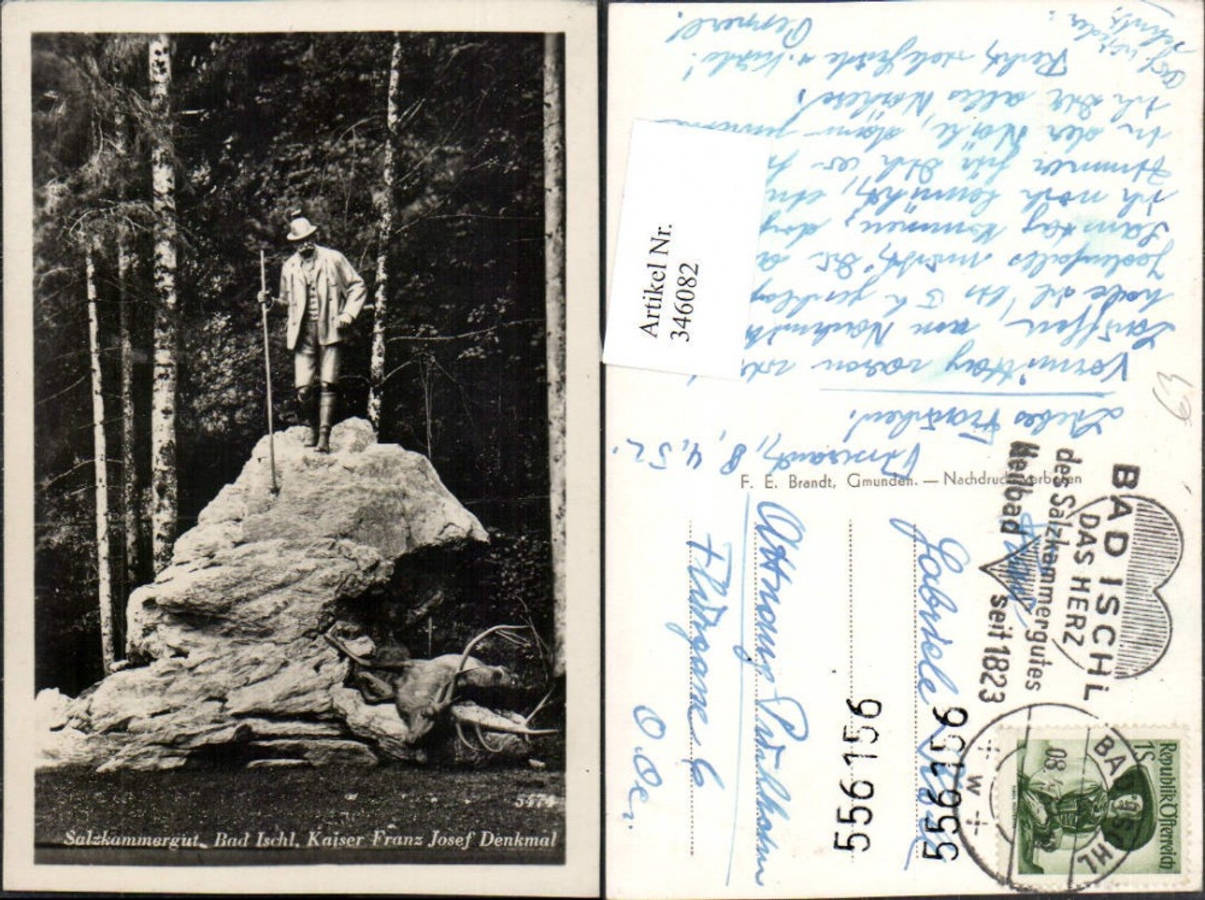346082,Bad Ischl Kaiser Franz Josef-Denkmal Statue Jäger Hirsch