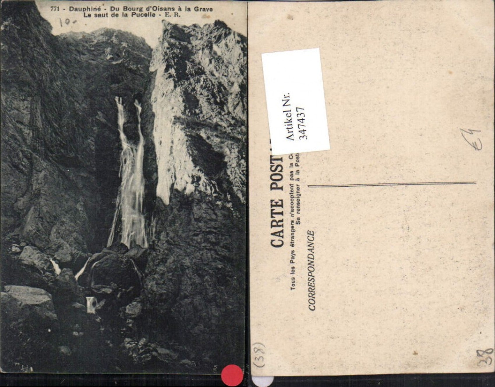 347437,Rhone-Alpes Isere Dauphine Du Bourg d'Oisans a la Grave Le saut de la Pucelle Wasserfall
