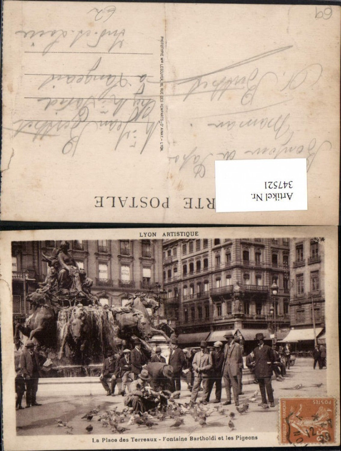 347521,Rhone-Alpes Rhone Lyon Place Terreaux Fontaine Bartholdi et les Pigeons Brunnen Tauben
