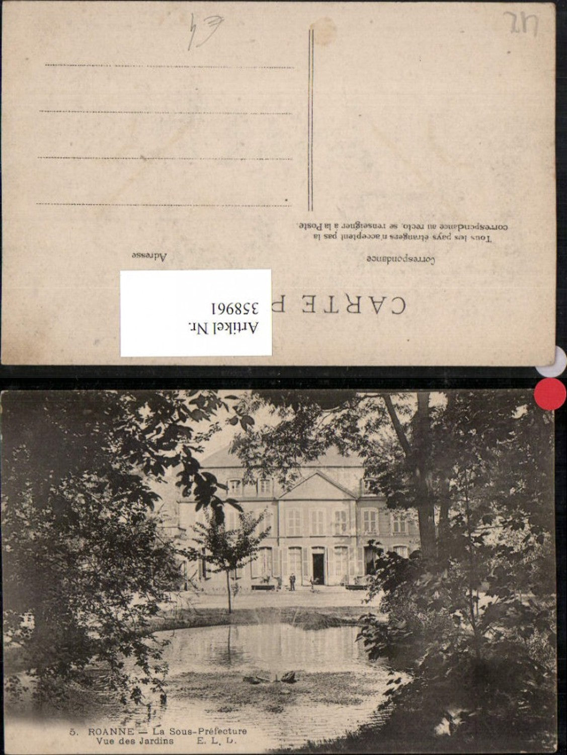 358961,Rhone-Alpes Loire Roanne La Sous-Prefecture Vue des Jardins Gebäude