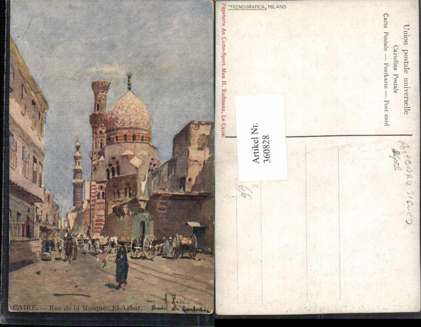 360828,Künstler AK A. Rossi Africa Egypt Caire Kairo Rue de la Mosque El-Azahr Moschee
