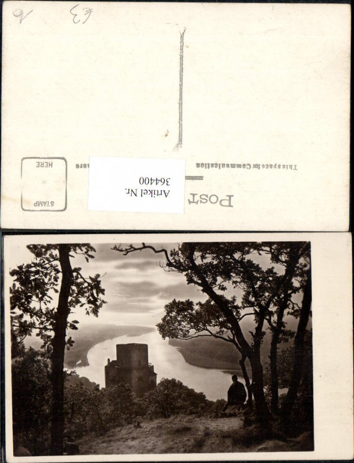 364400,Foto Ak Burg m. Flusstal Mann i. Vordergrund