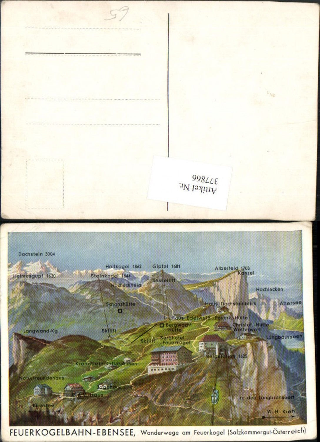377866,Künstler AK Feuerkogelbahn Ebensee Seilbahn Bergkulisse Wanderwege