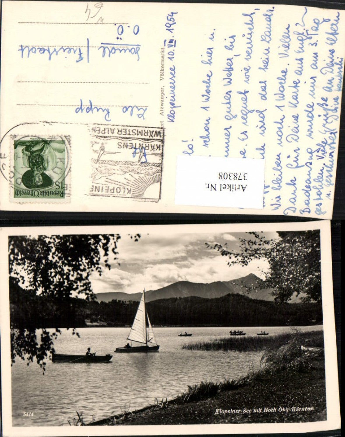 378308,Klopeinersee See b. St. Kanzian m. Hochobir Segelboot Ruderboot Bergkulisse