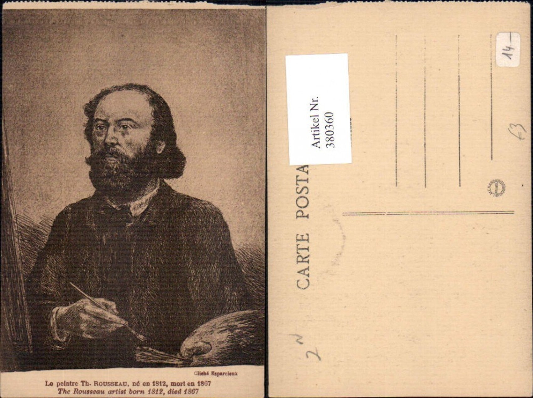 380360,Künstler Ak Th. Rousseau Selbstbildnis Kunst Wissenschaft