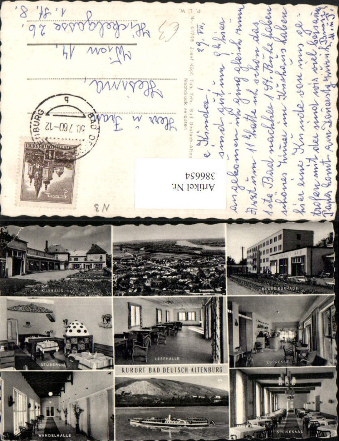 386654,Bad Deutsch-Altenburg Totale Kurhaus Speisesaal Dampfer Mehrbildkarte