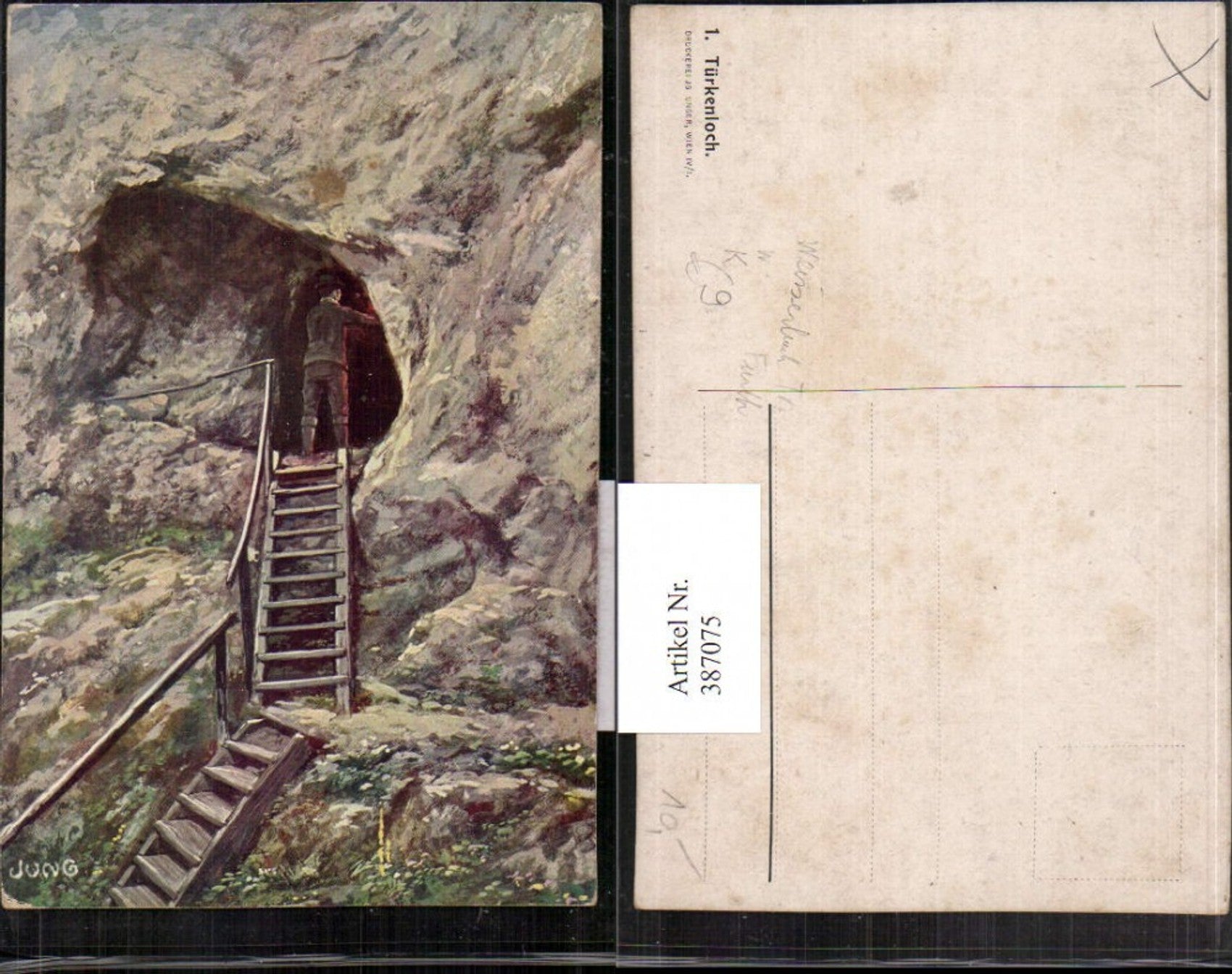 387075,Künstler AK Jung Türkenloch Höhle b. Weissenbach Furth an d. Triesting