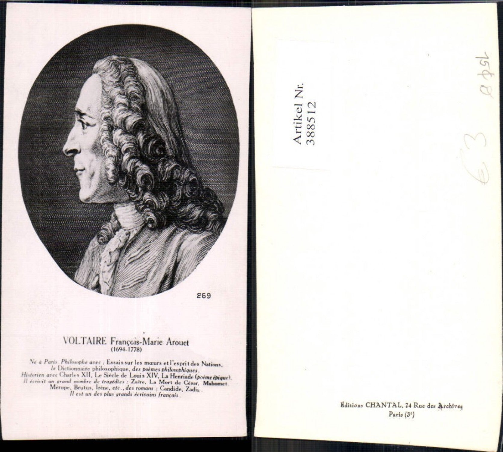 388512,Künstler Ak Francois-Marie Arouet de Voltaire Portrait Kunst Wissenschaft