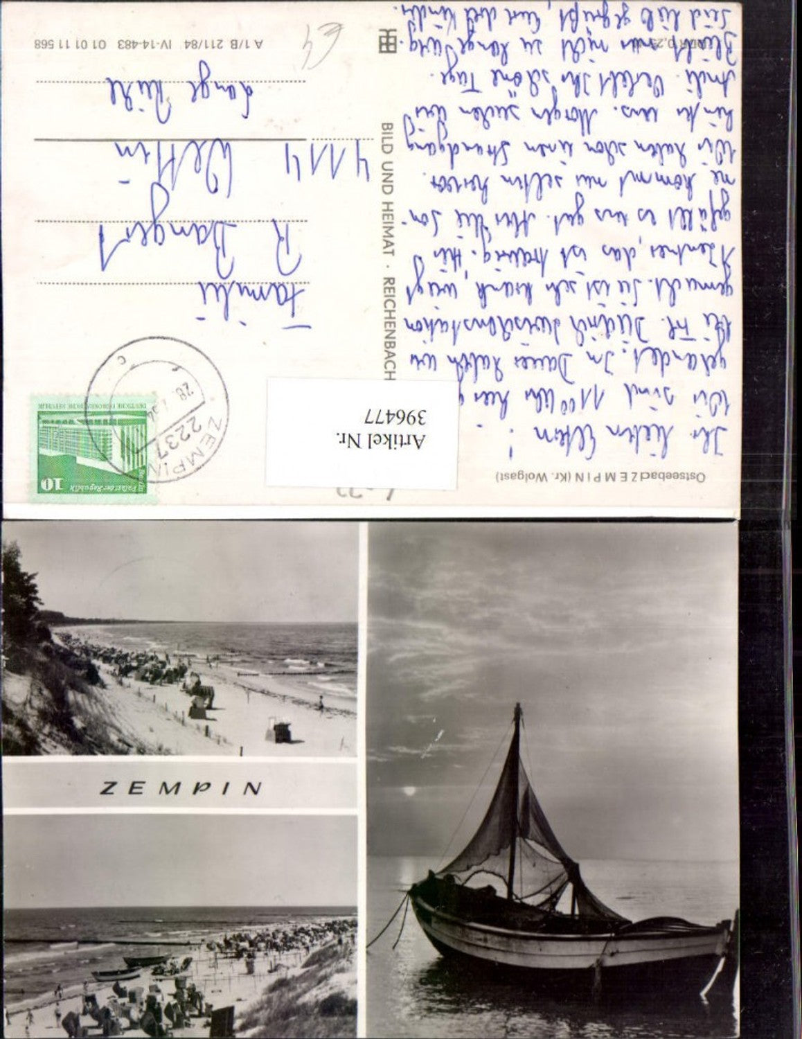 396477,Ostseebad Zempin Strand Strandleben Boot Mehrbildkarte pub VEB