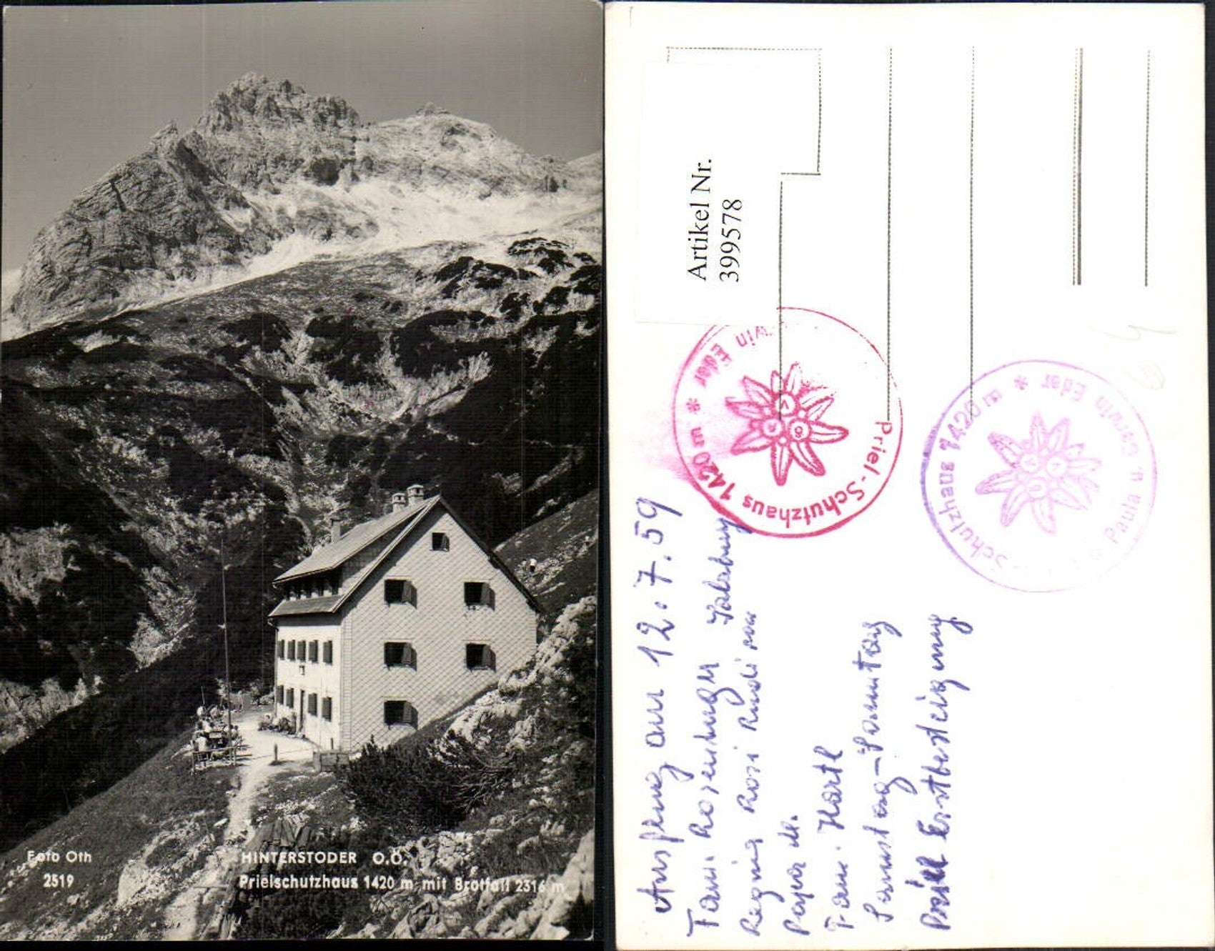 399578,Hinterstoder Prielschutzhaus Berghütte m. Brotfall Bergkulisse