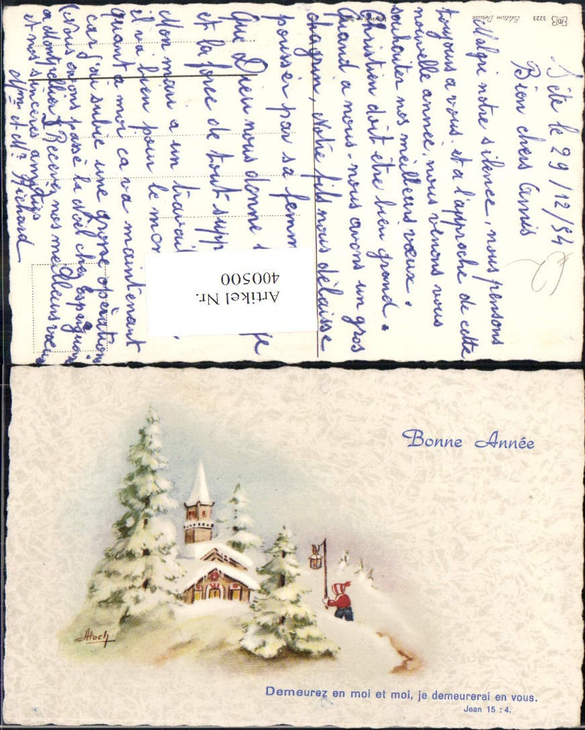 400500,Künstler Ak Atoch Kirche Kirchlein Winteransicht Kind Laterne
