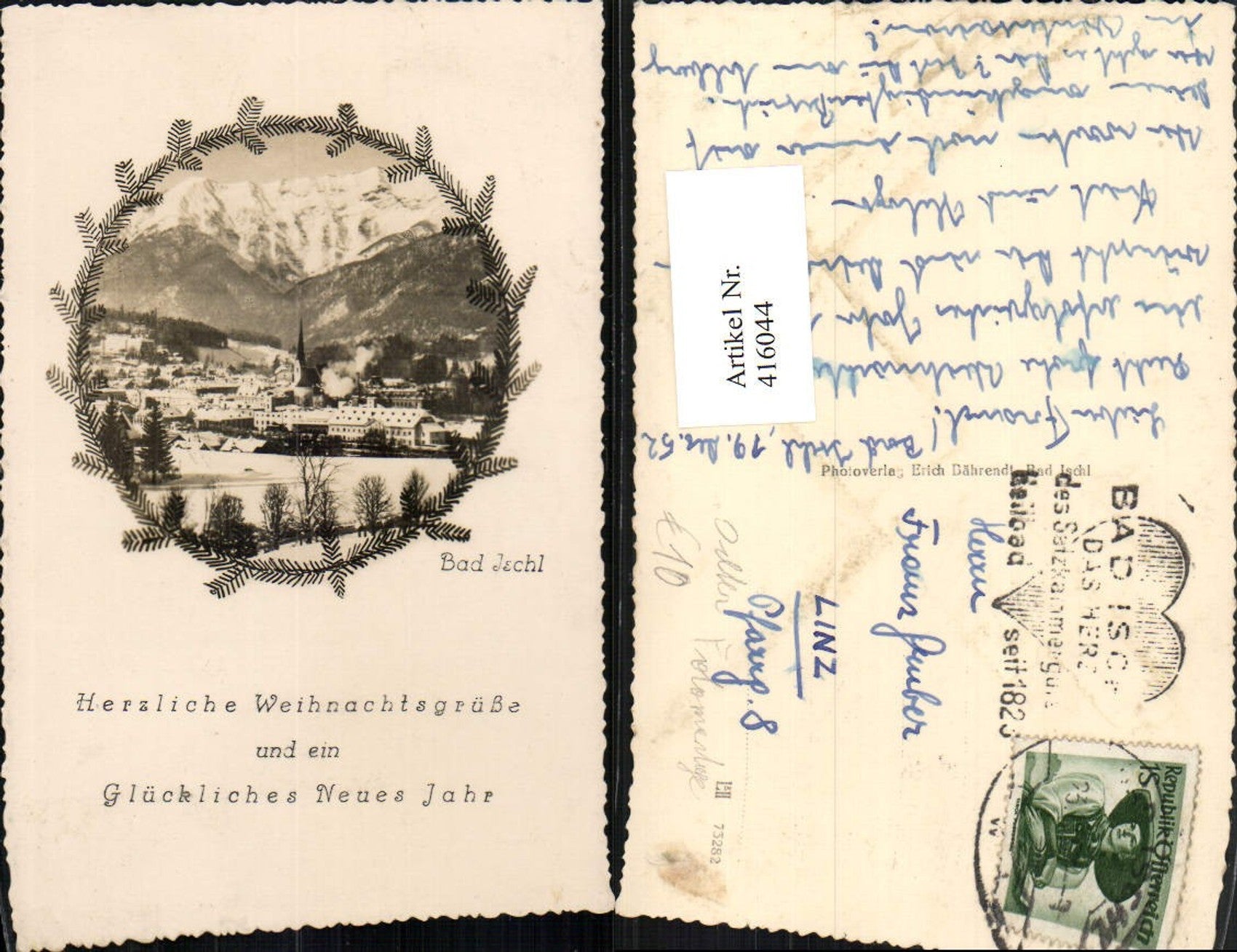 416044,Seltene Fotomontage Bad Ischl Totale Bergkulisse Winterbild Passepartout