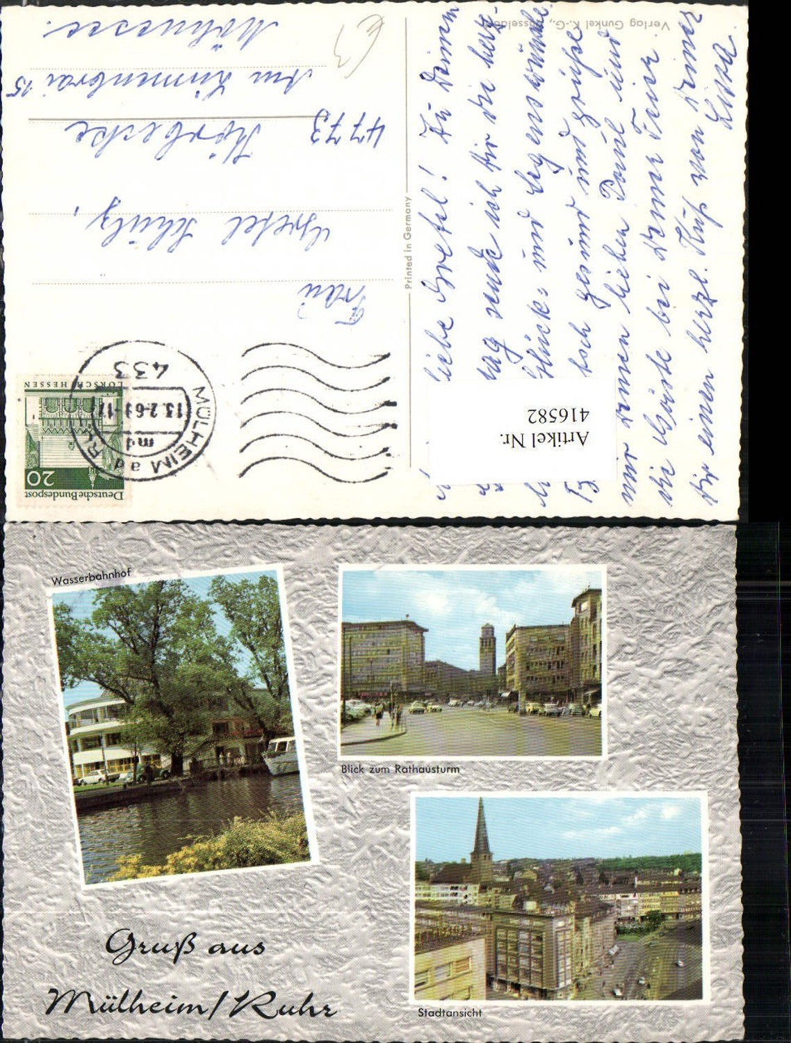 416582,Mülheim an d. Ruhr Wasserbahnhof Rathausturm Teilansicht Mehrbildkarte