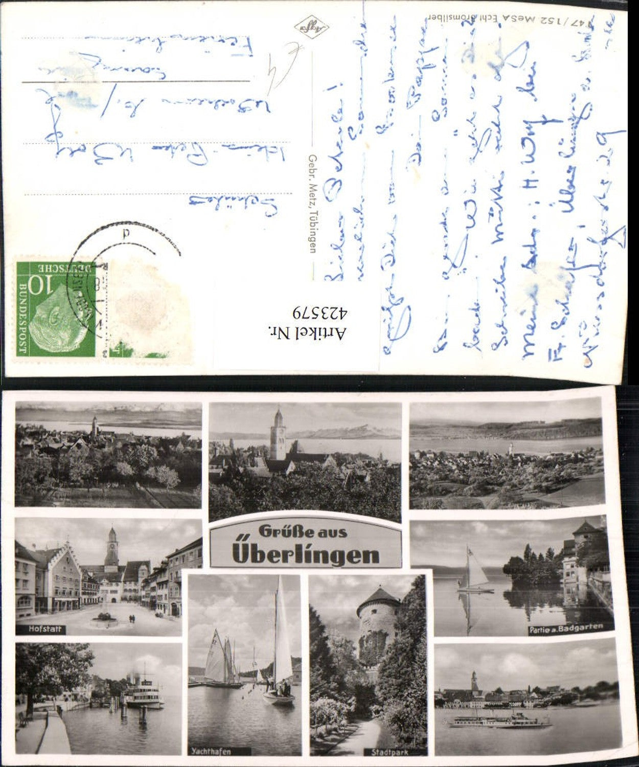 423579,Überlingen Totale Hofstatt Yachthafen Segelboote Dampfer Mehrbildkarte