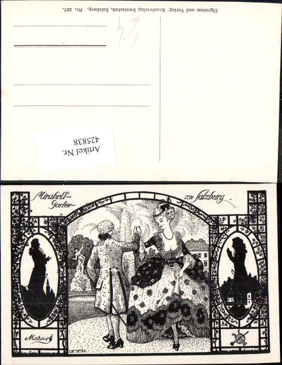 425838,Künstler Ak Ulf Seidl Mirabellgarten Salzburg Mozart Komponist Frau Tanzen Walzer