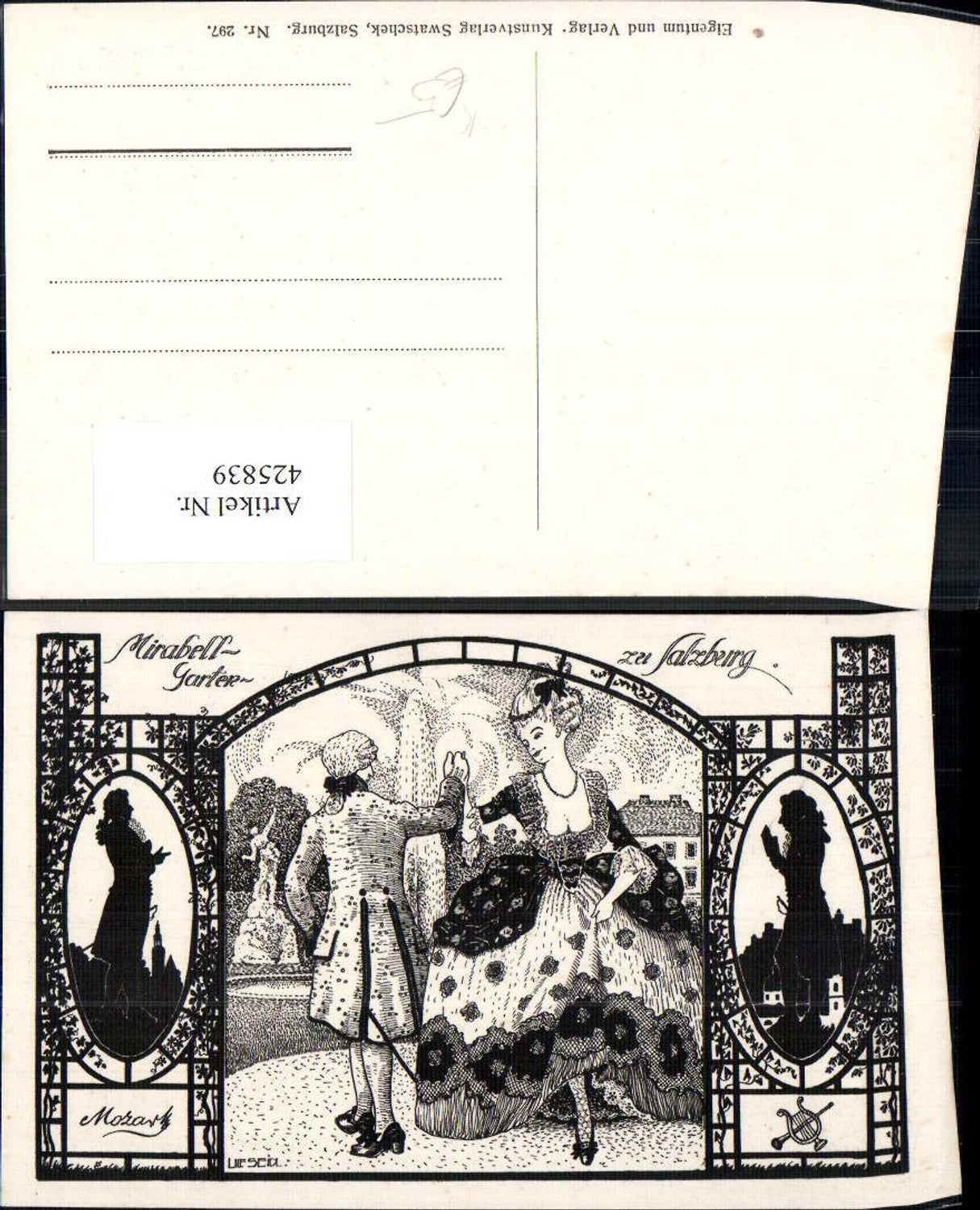 425839,Künstler Ak Ulf Seidl Mirabellgarten Salzburg Mozart Komponist Frau Tanzen Walzer