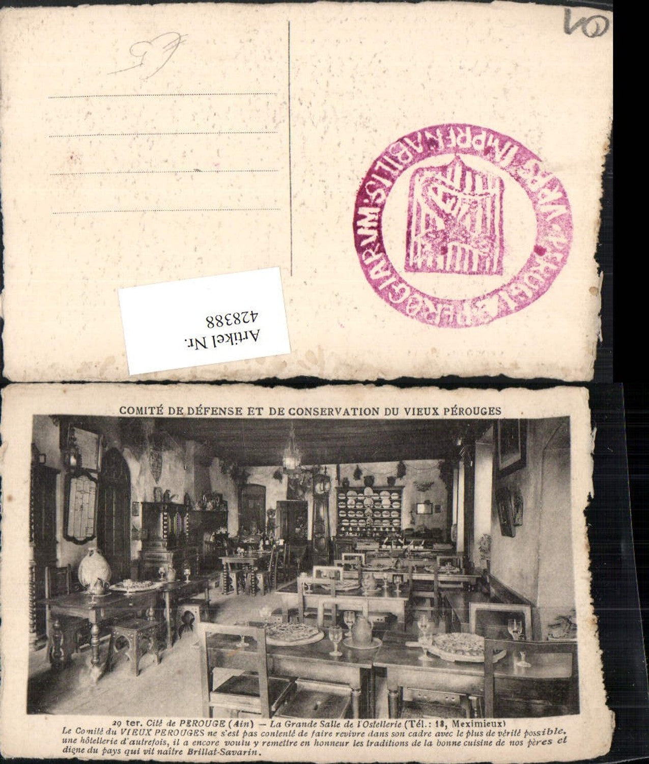 428388,Rhone-Alpes Ain Cite de Perouge La Grande Salle de l'Ostellerie Innenansicht