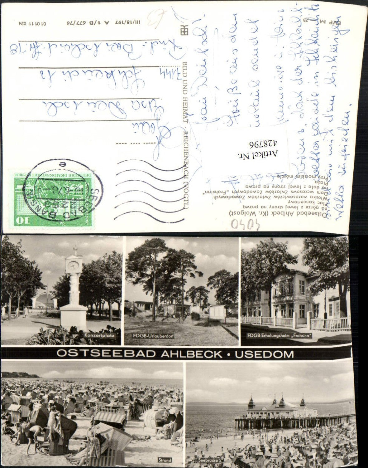428796,Ostseebad Ahlbeck Strand Strandleben Seebrücke Heim Mehrbildkarte