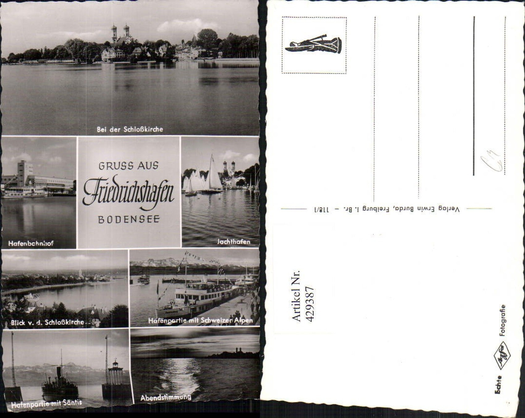 429387,Friedrichshafen am Bodensee Jachthafen Dampfer Hafenbahnhof Mehrbildkarte