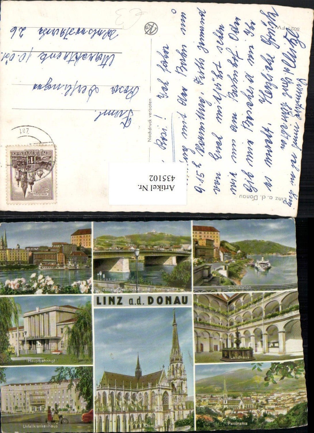 435102,Linz an d. Donau Totale Brücke Schiffsstation Bahnhof Dom Krankenhaus Mehrbildkarte