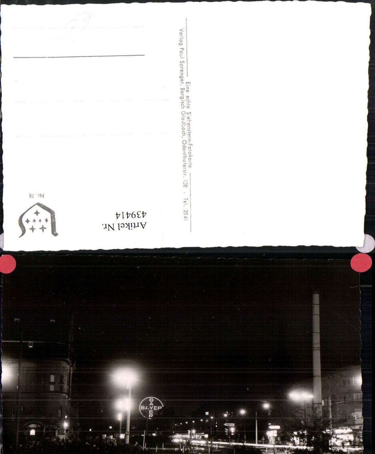 439414,Leverkusen Wiesdorf b. Nacht Straßenansicht Reklame Bayer