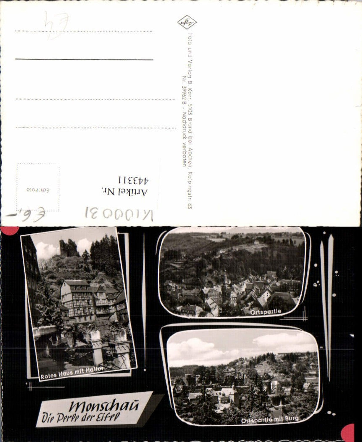 443311,Monschau in d. Eifel Totale Burg Rotes Haus Mehrbildkarte