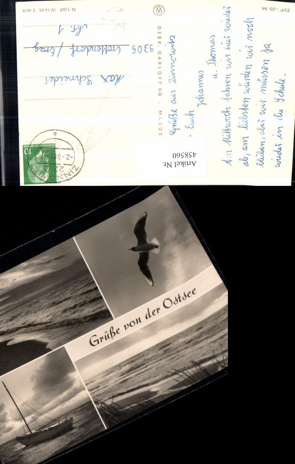 458560,Ostsee Zinnowitz Strand Boot Möwe Mehrbildkarte