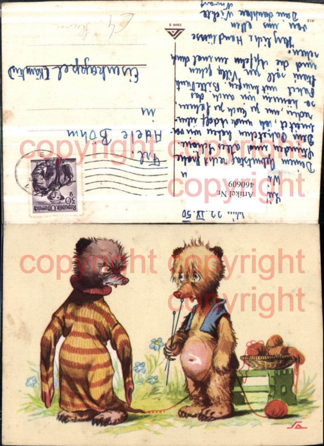 460609,Künstler AK Tiere Maulwurf vermenschlicht Stricken Humor