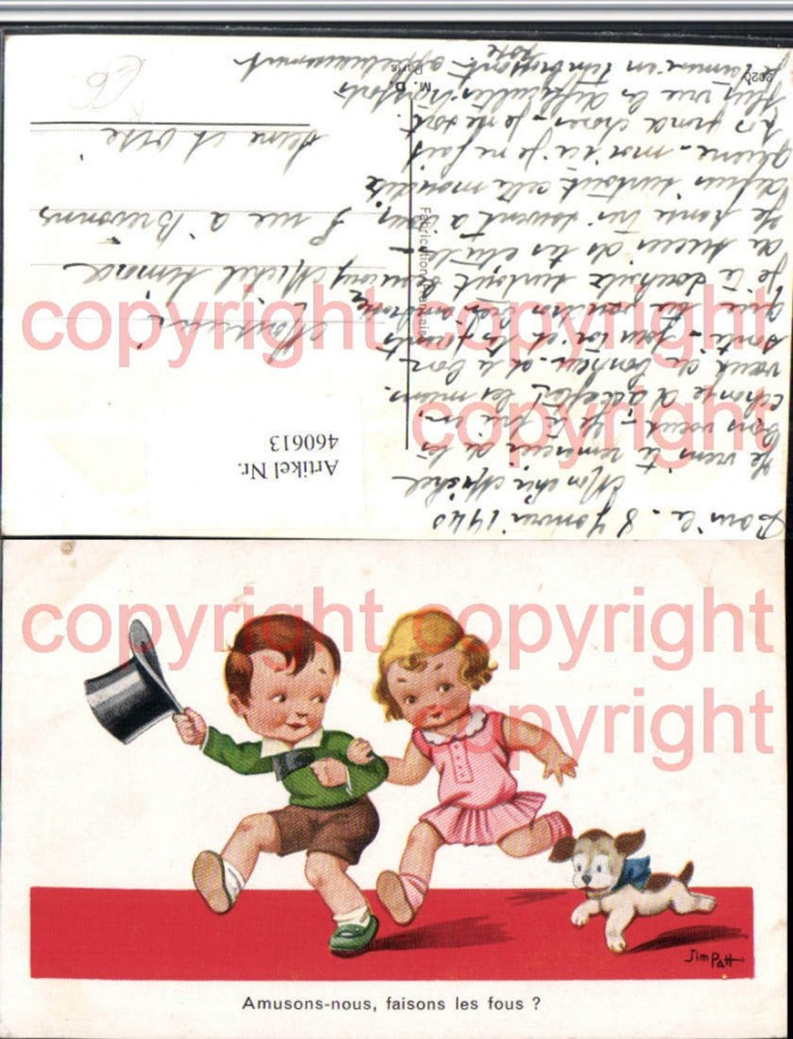 460613,Künstler AK Jim Patt Kinder Zylinder Hund Humor