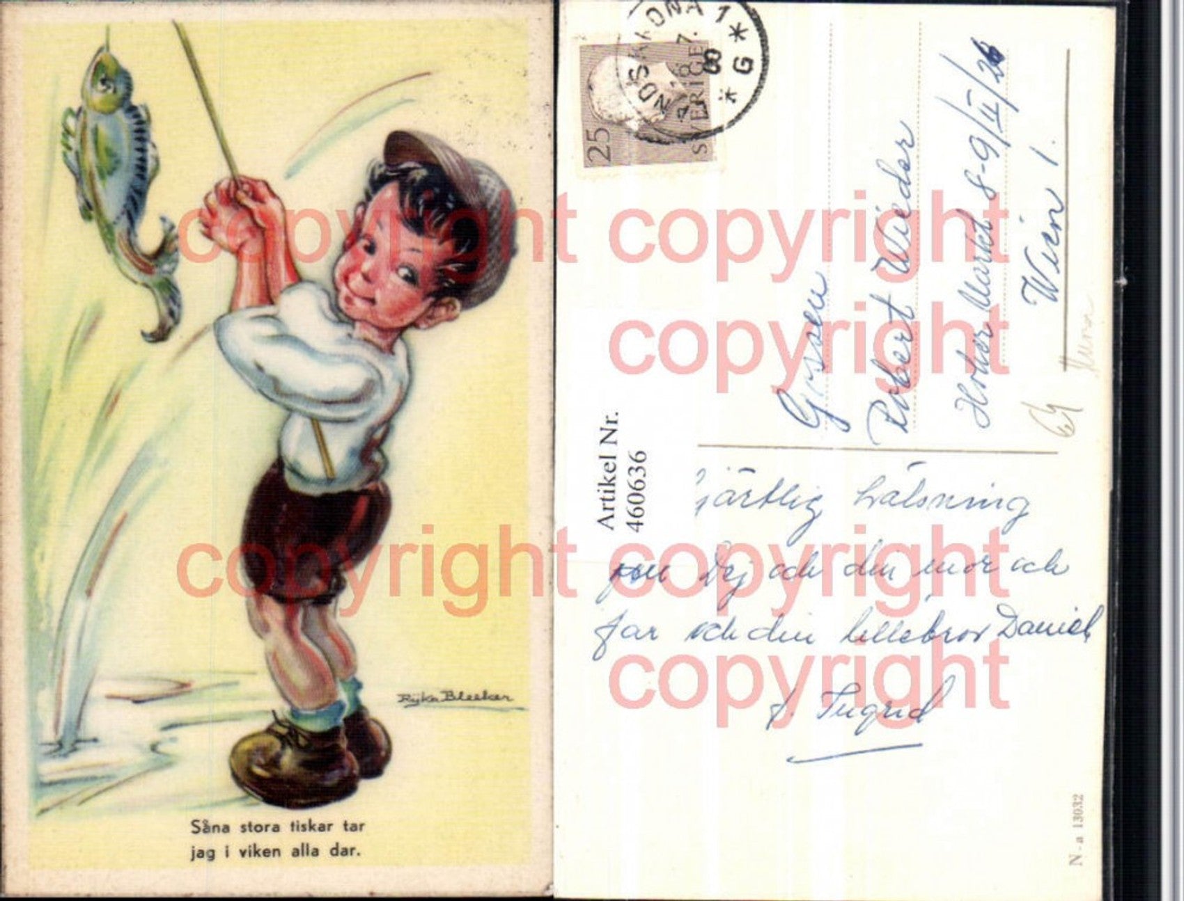 460636,Künstler AK Rijka Bleeker Kind Bub Angel Fisch Humor
