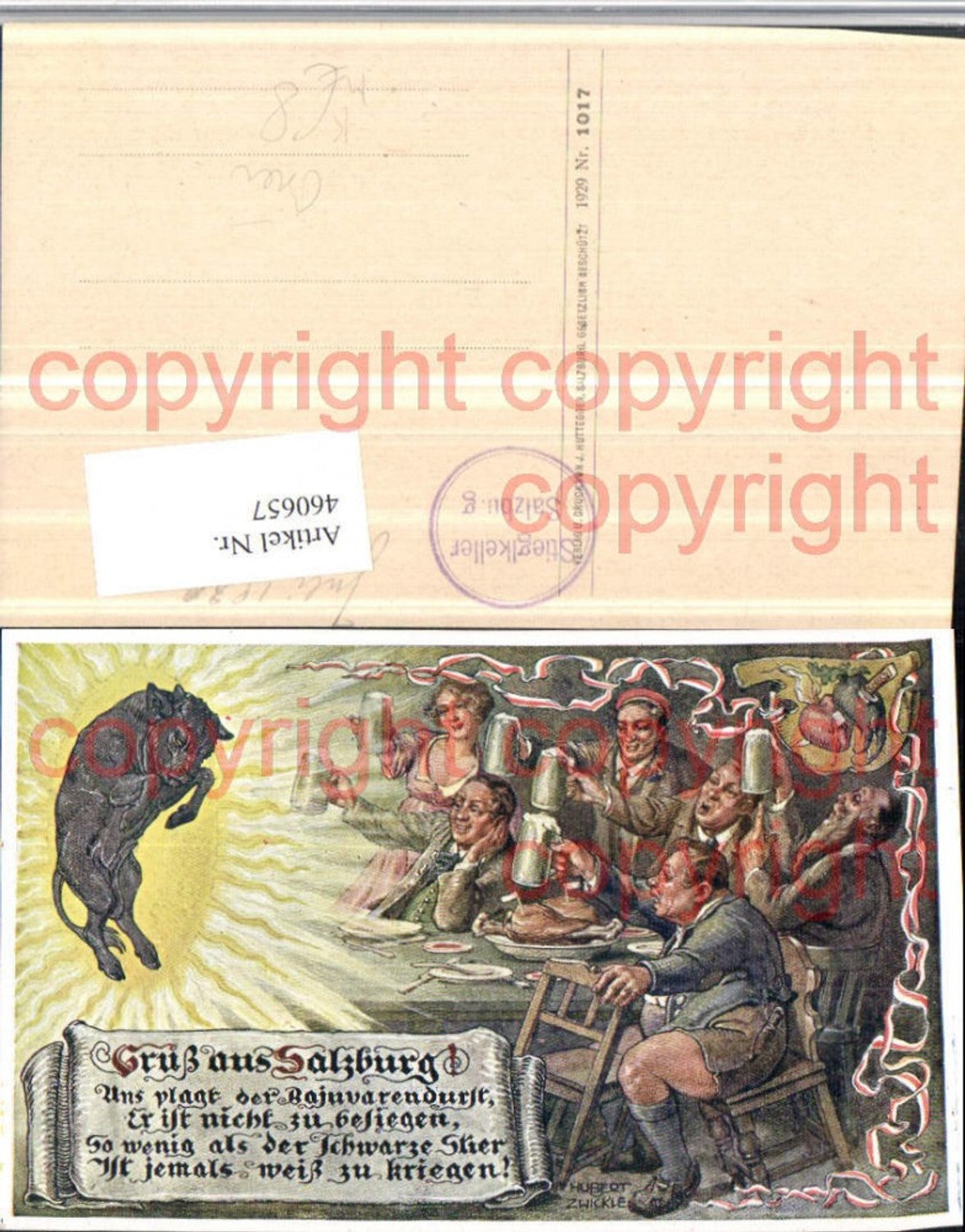 460657,Künstler AK Hubert v. Zwickle Salzburg Stieglkeller Bier Humor Stier
