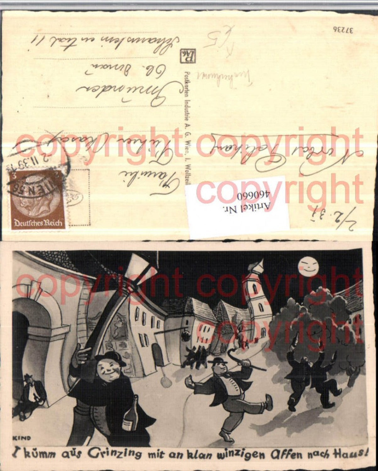 460660,Künstler AK Grinzing Betrunkene Dorf Mondgesicht Trinkerhumor