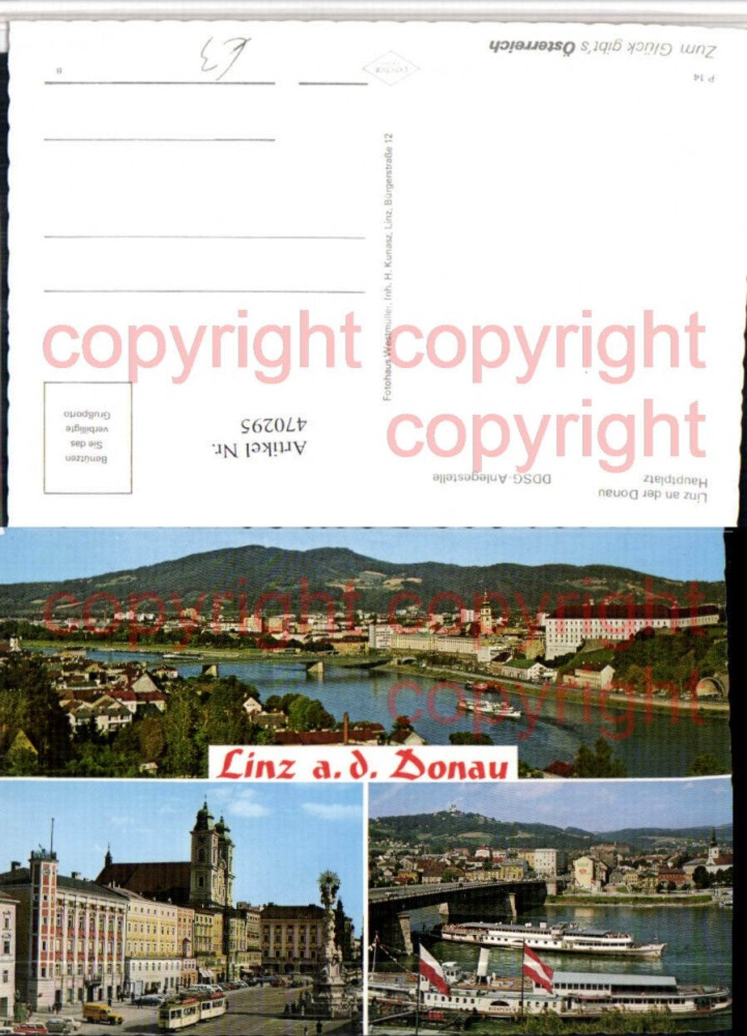 470295,Linz an d. Donau Totale Hauptplatz Dampfer Mehrbildkarte